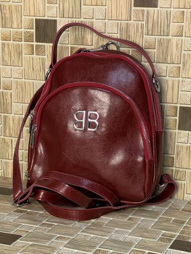 Женский рюкзак трансформер из экокожи . Закрывается клапаном и на молнию. Снаружи, на передней стенке вертикальный кармашек на молнии, на задней стенке горизонтальный карман на молнии. Внутри одно отделение и боковой кармашек. Лямки рюкзака вытягиваются в длинные ручки, что позволяет носить его через плечо как сумку. Снаружи, в верхней части, по бокам есть кнопки, которые позволяют сделать рюкзак Размеры: длина: 22см, ширина: 10см, высота 25см.